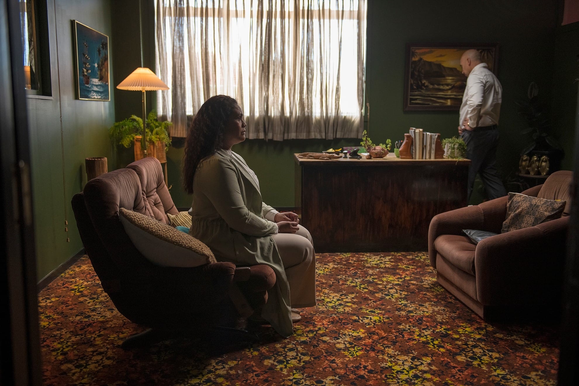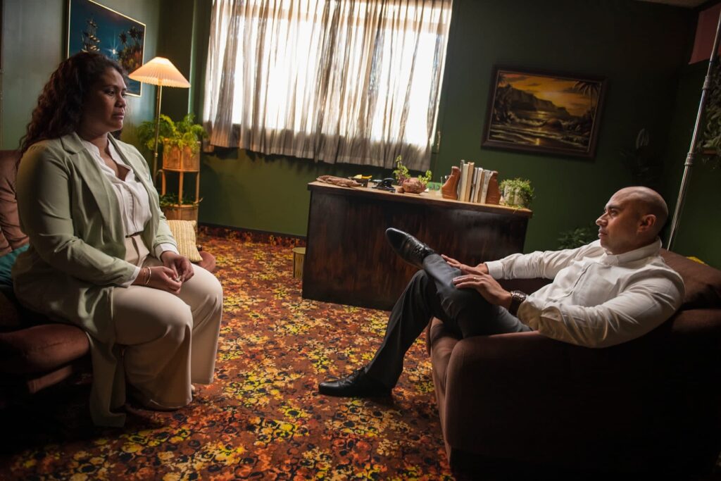 As the pressure mounts, Saia arrives, an aggressive man who challenges and intimidates her therapist, Liam. Then out of the chaos appears Puipui, a fierce ancestor and Ala’s spiritual protector. The tables turn as we discover that Ala is the therapist. Liam has disappeared, and we are in her office. She has overcome her past…or has she?
